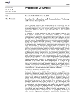 الأمر التنفيذي 13873، كما نشر في السجل الفدرالي الأمريكي.