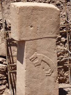 In 2014, a stone tool was found in the Gediz River that was securely dated to 1.2 million years ago.[1] Evidence of paleolithic (prehistory 500,000–10,000 BC) habitation include the Yarimburgaz Cave (Istanbul), Karain Cave (Antalya), and the Okuzini, Beldibi and Belbasi, Kumbucagi and Kadiini caves in adjacent areas. Examples of paleolithic humans can be found in the Museum of Anatolian Civilizations (Ankara), in the Archaeological Museum in Antalya, and in other Turkish institutions.