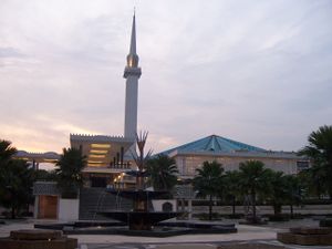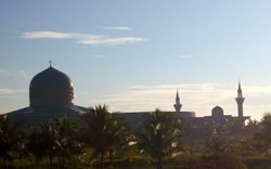 A mosque in Sepang along the highway to Kuala Lumpur International Airport (erroneously identified as the Sultan Salahuddin Abdul Aziz Shah Mosque)