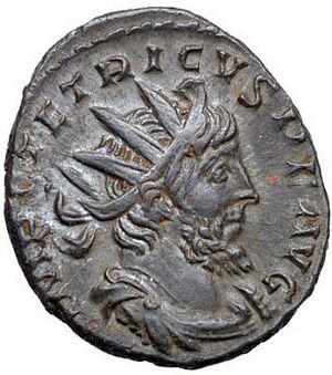 An officer in Postumus' army, Marcus Aurelius Marius, was installed as Emperor upon Postumus's death, but died very shortly after; ancient sources writing much later state that he reigned only two days, though it is more likely, based on the numismatic record, that he reigned for a few months.[11] Subsequently, the tribune of the praetorians, Marcus Piavonius Victorinus came to power, being recognized as Emperor in northern Gaul and Britannia, but not in Hispania.[12] Meanwhile, Roman Emperor Gallienus had been killed in a coup in 268, and his successor in the central Roman provinces, Claudius Gothicus, re-established Roman authority in Gallia Narbonensis and parts of Gallia Aquitania; there is some evidence that the provinces of Hispania, which did not recognize Postumus's successors in Gaul, may have realigned with Rome then.[12][13]