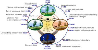 هذه هي الطريقة التي يتم بها التحكم في التوقيت في الجسم، على سبيل المثال: النوم والاستيقاظ ودرجة الحرارة والعطش والشهية يتم تنسيقهم بواسطة الساعة البيولوجية.
