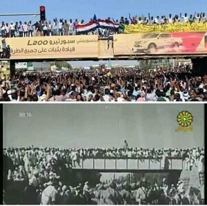 تعود المسيرات إلى ذكرى ثورية أقدم في 6 أبريل 1985، في ذلك اليوم، تصاعدت الاضطرابات المدنية في انقلاب أطاح بالديكتاتور العسكري القاسي جعفر النمري من السلطة. كان في واشنطن العاصمة في ذلك الوقت. [25]