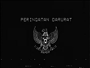 A popular image supporting the student protest is based on the fictional Emergency Alert System (EAS) shown above but with a black background, previously blue. This has led to the 'bakso' P.E.N.T.O.L. movement, an acronym representing six political demands (although the following emerged on February 4, before the protest):