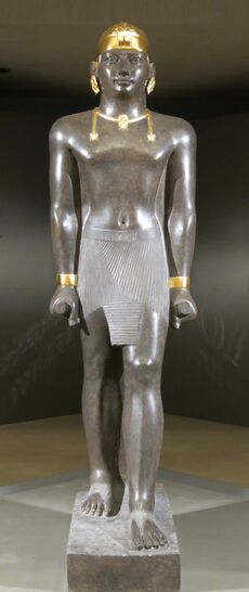 تمثال للحاكم الكوشي وفرعون الأسرة المصرية 25 طهارقا (حكم 690-664 ق.م.)، الذي قاد القتال ضد الآشوريين. إعادة إنشاء، متحف اللوڤر.