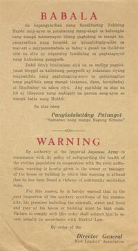 Kintanar, Thelma B.; Aquino, Clemen C. (2006). Kuwentong Bayan: Noong Panahon Ng Hapon : Everyday Life in a Time of War. UP Press. p. 564. ISBN 978-971-542-498-1. Retrieved 24 March 2013. - ^ أ ب "Philippines Map". American Experience. WGBH. 1999. Archived from the original on 26 December 2013. Retrieved 24 March 2013.