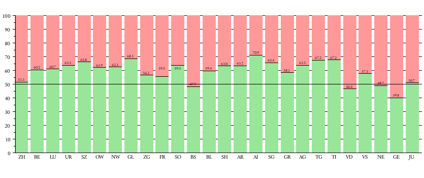 Early exit polls suggested that the proposal had been passed at plebiscite. According to gfs.bern the motion received 58% votes, then 59% with a turnout of about 55%.[4][5]