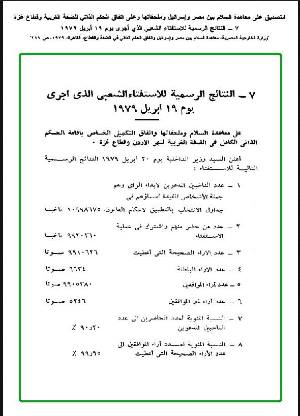 3. ^ "النتائج الرسمية للاستفتاء الشعبي الذي أجري على معاهدة السلام". وزارة الداخلية. 1979-04-19.