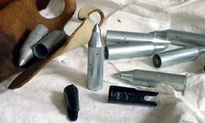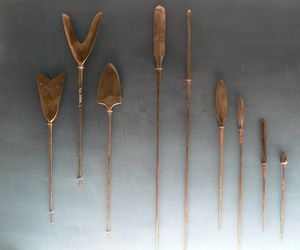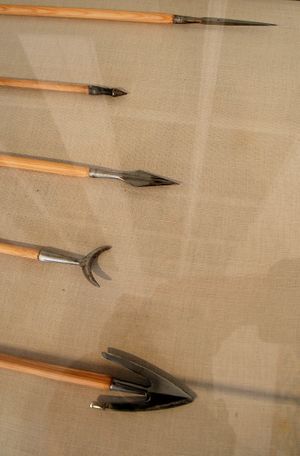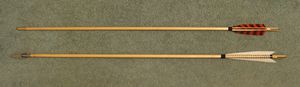 سهم مكون من عود خشبي طويل بمقدمته قطعة معدنية مدببة.