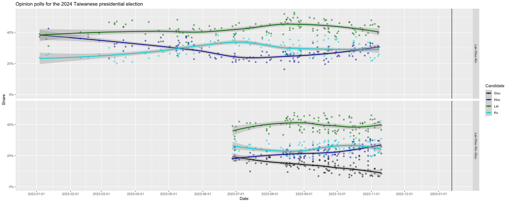 - ^ "Taiwan presidential contender Lai takes big lead in opinion polls". Nikkei Asia (in الإنجليزية البريطانية). Retrieved 2023-11-10.