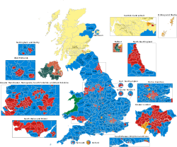 A map presenting the results of the election, by party of the MP elected from each constituency
