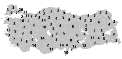 ![]() الأقليات حسب المحافظات: AKP CHP MHP HDP | |||||||||||||||||||||||||||||