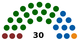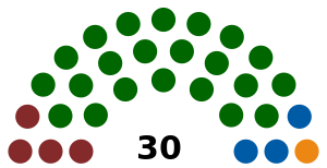 ![]() خريطة توضح حزب الأغلبية في كل وردا في أعقاب الانتخابات.