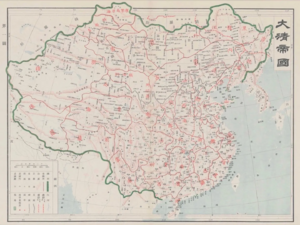 Soon after entering Beijing in June 1644, Dorgon despatched Wu Sangui and his troops to pursue Li Zicheng, the rebel leader who had driven the last Ming emperor to suicide, but had been defeated by the Qing in late May at the Battle of Shanhai Pass.[150] Wu managed to engage Li's rearguard many times, but Li still managed to cross the Gu Pass into Shanxi, and Wu returned to Beijing.[151] Li Zicheng reestablished his power base in Xi'an (Shaanxi province), where he had declared the foundation of his Shun dynasty back in February 1644.[152] In October of that year Dorgon sent several armies to root out Li Zicheng from his Shaanxi stronghold,[153] after repressing revolts against Qing rule in Hebei and Shandong in the summer and autumn of 1644. Qing armies led by Ajige, Dodo, and Shi Tingzhu won consecutive engagements against Shun forces in Shanxi and Shaanxi, forcing Li Zicheng to leave his Xi'an headquarters in February 1645.[154] Pursued by Ajige, Li retreated down the Han River into Wuchang, Hubei and further to Tongcheng and the Jiugong Mountains until he was killed in September 1645, either by his own hand or by a peasant group that had organized for self-defense in this time of rampant banditry.[155]
