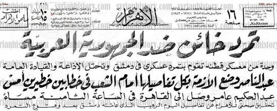 في الساعات الأولى من صباح الثامن والعشرين من أيلول صحا الناس على تبادل عيارات نارية في أنحاء متفرقة من البلد، وانبلج الصبح فإذ بدبابات ومصفحات ومجنزرات قوات البادية تحاصر الدوائر الرسمية وتتجول في الشوارع الرئيسية بدمشق.