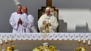 في 5 فبراير 2019، ترأس البابا فرانسيس قداساً تاريخياً في الإمارات صلى فيه بأكثر من 130 ألف كاثوليكي، تجمعوا في ملعب لكرة القدم بالعاصمة أبو ظبي. ولوح البابا للمصلين من أتباعه الذين حملوا لافتات وأعلام الفاتيكان في ملعب زايد، الذي أقيم فيه مذبح وصليب ضخم لأول مرة في مكان مفتوح، إذ لا يسمح للمسيحيين في الإمارات بالصلاة إلا داخل الكنائس. ودخل الملعب نحو 50 ألف بتذاكر لحضور القداس وكان من بينهم مجموعة صغيرة رفعت لافتة كتب عليها "نحن مسيحيو اليمن نحبك". وتجمع نحو 80 ألف آخرين في محيط الملعب يتابعون الصلاة عبر شاشات كبيرة نصبت لهذا الغرض، وبعدها غادر البابا الإمارات. وانضم إلى البابا رهبان من جنسيات مختلفة شاركوا في القداس الذي نقله التلفزيون الإماراتي على الهواء.[8]