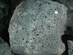البازلت هي صخور نارية بركانية صلبة سوداء. تحتوي على نسبة أقل من 52 % من السيليكا (SiO2). بسبب محتوى البازلت المنخفض السيليكا، للصخور لزوجة (مقاومة للتدفق) منخفضة. لذا فإن الحمم البازلتية بإمكانها التدفق بسرعة وتتحرك بسهولة تحرك. تسمح اللزوجة المنخفضة للغازات البركانية بالخروج دون توليد انفجارات هائلة. ولكن نافورات الحمم البازلتية وانفجارات الشقوق لا تزال تشكل نافورات متفجرة طولها مئات الأمتار. من ضمن المعادن الشائعة في البازلت: الأوليفين (Olivine)، والبيروكسين (Pyroxene)، والبلاجيوكليس (Plagioclase). ينفجر البازلت في درجات الحرارة بين 1100 إلى 1250° سيليزية.
