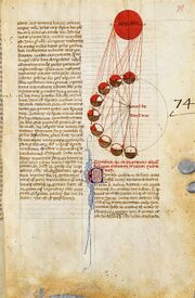 ![]() صفحة من الترجمة اللاتينية لكتاب الزيج الصابئ (حوالي 900)، اللاتينية 7266، مكتبة فرنسا الوطنية | |