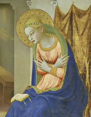 The Prado Annunciation is an altarpiece painted by the Italian Renaissance painter Giovanni da Fiesole, known as Fra Angelico, in the 1420s. It is one of his best-known works. Originally destined for the convent of the observant Dominicans of Fiesole, the painting is currently in the collection of the Museo del Prado in Madrid. It is one of three altarpieces by Fra Angelico representing the Annunciation; the other two being the Cortona Annunciation and the Annunciation of San Giovanni Valdarno. The sequence in which the three works were painted is not certain, but the general art historical consensus places the Prado version first.