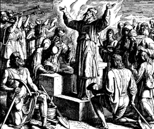 During this same period, a movement began that would change the organization of the school curriculum in Protestant and especially Puritan circles and that led to rhetoric losing its central place. A French scholar, Petrus Ramus (1515–1572), dissatisfied with what he saw as the overly broad and redundant organization of the trivium, proposed a new curriculum. In his scheme of things, the five components of rhetoric no longer lived under the common heading of rhetoric. Instead, invention and disposition were determined to fall exclusively under the heading of dialectic, while style, delivery, and memory were all that remained for rhetoric.[16] Ramus was martyred during the French Wars of Religion. His teachings, seen as inimical to Catholicism, were short-lived in France but found a fertile ground in the Netherlands, Germany, and England.[17]
