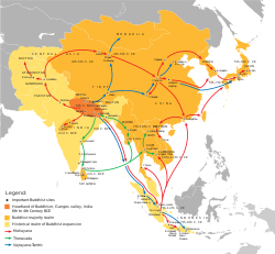 The Dharmaguptakas made more efforts than any other sect to spread Buddhism outside India, to areas such as Afghanistan, Central Asia, and China, and they had great success in doing so.[14] Therefore, most countries which adopted Buddhism from China, also adopted the Dharmaguptaka vinaya and ordination lineage for bhikṣus and bhikṣuṇīs. According to A.K. Warder, in some ways in those East Asian countries, the Dharmaguptaka sect can be considered to have survived to the present.[15] Warder further writes that the Dharmaguptakas can be credited with effectively establishing Chinese Buddhism during the early period:[16]