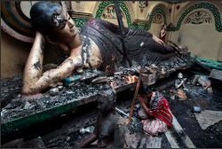 في سبتمبر 2012، أضرم آلاف المسلمين النار، في معابد ومنازل بوذية، إثر نشر صورة اعتبروها مهينة لهم على موقع التواصل الاجتماعي فيس بوك، في أعمال عنف نادرة الشدة ضد البوذيين في بنگلادش. وأكد مسؤول مقاطعة جوين الباري، في تصريحات لوكالة الأنباء الفرنسية، أن «حشدًا من 25 ألف شخص أحرقوا 5 معابد بوذية، وعشرات المنازل، في مدينة رامو، وقرى محيطة بها تبعد 350 كم عن العاصمة دكا».[3]