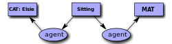 [Cat Elsie] [Sitting *x] [Mat *y] (agent ?x Elsie) (location ?x ?y)