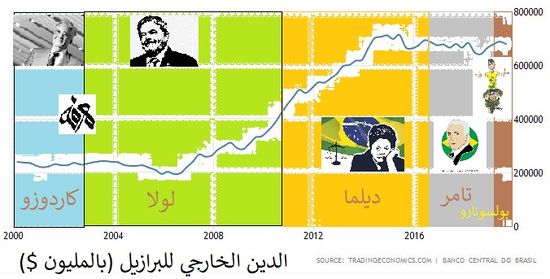 الدين الخارجي للبرازيل (بالمليون دولار)، 2000-2019.