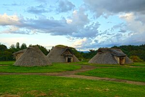 The Middle Jōmon period (3520–2470 BCE) saw a rise in complexity in the design of pit-houses, the most commonly used method of housing at the time,[21] with some even having paved stone floors.[22] At the end of the Jōmon period the local population declined sharply. Scientists suggest that this was possibly caused by food shortages and other environmental problems. They concluded that not all Jōmon groups suffered under these circumstances but the overall population declined.[23] Examining the remains of the people who lived throughout the Jōmon period, there is evidence that these deaths were not inflicted by warfare or violence on a large enough scale to cause these deaths.[24]