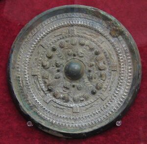 The Kofun period recorded Japan's earliest political centralization, when the Yamato clan rose to power in southwestern Japan, established the Imperial House, and helped control trade routes across the region.[35] Much of the material culture of the Kofun period demonstrates that Japan was in close political and economic contact with continental Asia (especially with the southern dynasties of China) via the Korean Peninsula; bronze mirrors cast from the same mould have been found on both sides of the Tsushima Strait. Irrigation, sericulture, and weaving were brought to Japan by Chinese immigrants, who are mentioned in ancient Japanese histories; the Chinese Hata clan (秦, read "Qín" in Chinese) introduced sericulture and certain types of weaving.[36]