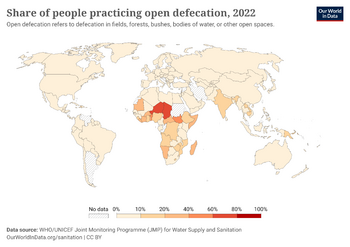 - ^ "Share of people practicing open defecation". Our World in Data. 6 January 2024. Archived from the original on 17 August 2024. Retrieved 2024-08-16.