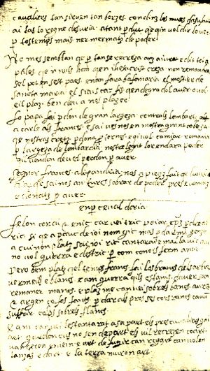 8. ^ Fully Compendi de la conexença dels vicis que.s podon esdevenir en las dictats del Gay Saber: "Compendium of the knowledge of the vices that can be expressed in the Gay Science".