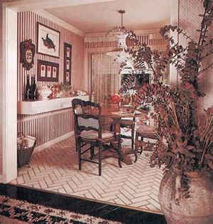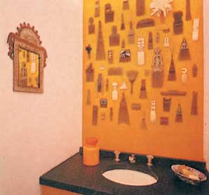 وقد استعمل بعض الناس الجلود الطبيعية والمعادن والبلاستيك في غطاء الجدران، وكلّها متوافر في بعض المحال التجارية. وتمتاز الأقمشة الموشاة بمادة الفينيل بقابليتها الكاملة للغسل، ومن ثم بملاءمتها لمرافق الاستعمال الكثيف كالحمامات وغرف ألعاب الأطفال. وتضفي الأغطية المصنوعة من مادة الفلين مظهرًا عامًا يتسم بالأناقة، إضافة إلى قدرة فائقة على امتصاص الضوضاء. ولأن درجة امتصاصها للصوت عالية، يستخدم بعضهم الأبسطة كغطاء للجدران. كما أنها تسهل نظافتها من خلال المكنسة الكهربائية. ختيار كماليات الزينة. هذه الكماليات هي مجموعة الأشياء الصغيرة التي يمكن تحريكها والزينات المكمّلة للتصميم الداخلي. بعض هذه الكماليات،كاللوحات الفنية والتماثيل والأعمال الفنية الأخرى، ذو غاية تزيينية بحتة. وبعضها الآخر، كمنافض السجائر وساعات الحائط، ذو وظائف نفعية وتزيينية معًا. وقد تنجح الكماليات في إضفاء درجات لونية في المساحة الفراغية بحيث تتناغم مع أرجاء الفراغ وفق تدريج متناسب مع معايير الشكل والجو العام للمكان.
