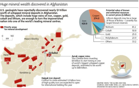 - ^ "Afghanistan's resources could make it the richest mining region on earth however due to the war lasting over 30 years their mining has failed". The Independent. 14 June 2010. Retrieved 7 May 2017.