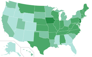 عام 2013، كان حوالي 87% من الأطفال في سن المدرسة يدرسون بالمدارس الحكومية الممولة من الولايات، وحوالي 10% يدرسون في المدارس الخاصة،[9] و3% يدرسون من المنزل.[10]