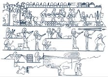 Some of the older tools used in the construction of Egyptian housing included reeds and clay. According to Lucas and Harris, “reeds were plastered with clay in order to keep out of heat and cold more effectually”.[7] Other tools that were used were "limestone, chiseled stones, wooden mallets, and stone hammers".[8] With these tools, ancient Egyptians were able to create more than just housing, but also sculptures of their gods,