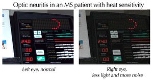في حالة التهاب العصب البصري ، تصبح أنسجة العصب متورمة، وبالتالي لا تعمل الألياف العصبية بصورة سليمة.