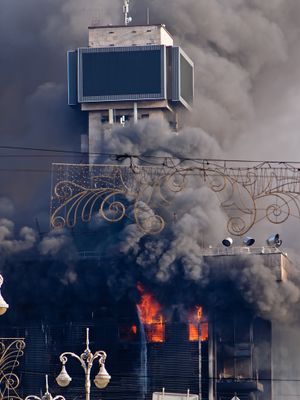 مبنى النقابات التجارية، استخدم كمقر رئيسي في يورو ميدان، بعد إحتراقه في أعقاب هجوم الشرطة.