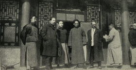 Many of the May Fourth protests were led and organized by students, who had become increasingly radical in the past few years. The October Revolution in Russia had inspired many of them to join study groups centered on Marxist theory.[59][60] Soviet Russia offered a unique and compelling model of modernization and revolutionary social change in semi-colonial nation.[61] One of the most influential study groups was led by Li Dazhao, head librarian at Peking University.[62] His study group included Mao Zedong and Chen Duxiu, the latter of who was now working as dean at the university.[63] As the editor of New Youth, Chen used his journal to publish a series of Marxist articles, including an entire issue devoted to the subject in 1919.[64][65] By 1920, Li and Chen had fully converted to Marxism, and Li founded the Peking Socialist Youth Corps in Beijing.[66] Chen had moved back to Shanghai, where he also founded a small Communist group.[67]