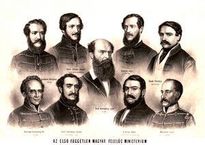 The first responsible government was formed with Lajos Batthyány serving as Prime Minister. With the exception of Lajos Kossuth, all members of the government were the supporters of Széchenyi's ideas.[بحاجة لمصدر]