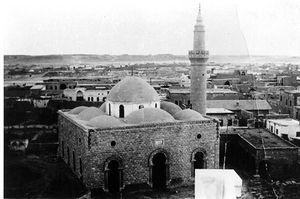 بنيت مآذنه الأربعة في بداية القرن العشرين واستمر العمل فيها حتى نهاية العام 1907، تتجه بوابته الرئيسية إلى الشمال وتتوسط محلات تجارية كثيرة تابعة لحرم الجامع، و يوجد في الجهة الغربية منه أربع غرف قديمة، يحاذيها رواق على شكل أقواس عثمانية وأميال رخامية إضافة إلى أن سقوفه عبارة عن قبب خمسة، كانت تستخدم هذه الغرف كقاعات للدروس الدينية، كما استخدمت في بعض المراحل (منذ عام 1960 ـ 1985) مهاجع ليلية لطلاب الشرعية، ويوجد تحت كل غرفة سرداب يدخل إليه ضمن فتحه مربعة في زاوية الغرفة [1].