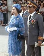 الجنرال الدليمي برفقة الملك الحسن الثاني والملكة إليزابث ملكة انجلترا