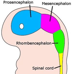 أولا، مجمل الأنبوب العصبي سيتمايز إلى قسمين رئيسين: نخاع شوكي (قسم ذنبي) ودماغ (جزء منقاري). من ثم يتمايز الدماغ إلى جذع الدماغ brainstem والدماغ الأمامي prosencephalon .