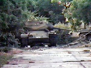 Violence flared up in Mogadishu on 17 November 1991, when the Aidid-aligned faction of the USC attacked Mahdi-aligned forces in the city. They seized most of the city, but could not push Mahdi's forces out of northern Mogadishu.[62] In 1992, after four months of heavy fighting for control of Mogadishu, a ceasefire was agreed between Ali Mahdi Mohamed and Mohamed Farah Aideed. Neither had seized control of the capital, and as a result, a 'greenline' was established between east and west[63] that divided their areas of control.[64]
