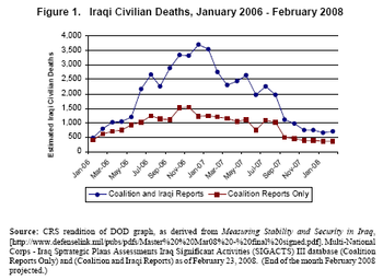 - The Intelligence Community judges that the term "civil war" does not adequately capture the complexity of the conflict in Iraq, which includes extensive Shia-on-Shia violence, al-Qa'ida and Sunni insurgent attacks on Coalition forces, and widespread criminally motivated violence. Nonetheless, the term "civil war" accurately describes key elements of the Iraqi conflict, including the hardening of ethno-sectarian identities, a sea change in the character of the violence, ethno-sectarian mobilization, and population displacements.[58]