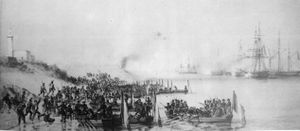 قصف الصويرة: القوات الفرنسية تهبط جزيرة الصويرة، في خليج الصويرة في 1844.