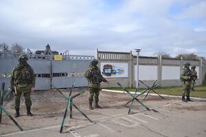 Russia's decision to annex Crimea was made on 20 February 2014.[149][150][151][152] On 22 and 23 February, Russian troops and special forces began moving into Crimea through Novorossiysk.[151] On 27 February, Russian forces without insignias began taking control of the Crimean Peninsula.[153] They took hold of strategic positions and captured the Crimean Parliament, raising a Russian flag. Security checkpoints were used to cut the Crimean Peninsula off from the rest of Ukraine and to restrict movement within the territory .[154][155][156][157] In the following days, Russian soldiers secured key airports and a communications center.[158] Additionally, the use of cyberwarfare led to websites associated with the official Ukrainian Government websites, the news media, as well as social media shutting down. Cyber attacks also disabled or gained access to the mobile phones of Ukrainian officials and parliament members over the next few days, further severing lines of communication.[159]