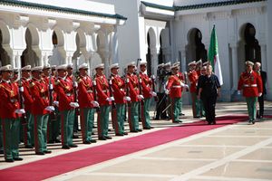 وزيرة الخارجية الأمريكية هيلاري كلنتون برفقة الرئيس عبد العزيز بوتفليقة يتفقدا الحرس الجمهوري في الجزائر العاصمة، 2012.