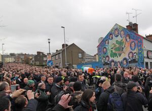 Republican action, including armed campaigns, continued in the newly-formed state of Northern Ireland, a region of the United Kingdom. Tensions in the territory culminated in widespread conflict by 1969. This prompted paramilitaries: republicans assembled under the Provisional Irish Republican Army, who waged a campaign against the British state for approximately three decades—the most pronounced and prolonged republican campaign.[1] Represented by Sinn Féin, republicans would gradually invest in political action, including the Northern Ireland peace process and the Good Friday Agreement of 1998. The PIRA have since decommissioned and republicans have been elected to various echelons of government: those within the movement opposed to this outcome are often referred to as dissident republicans.