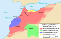 خريطة للمغرب إبان الفترة الإدريسية (بالأصفر: امتداد مملكة نكور)