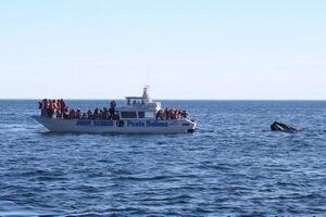 A southern right whale approaches close to whale watchers near Península Valdés in Patagonia